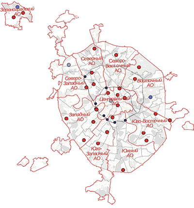 Схема расположения станций контроля загрязнения атмосферы в Москве